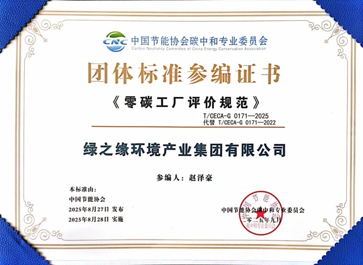 绿之缘集团参编《零碳工厂评价规范》,共筑行业绿色基石