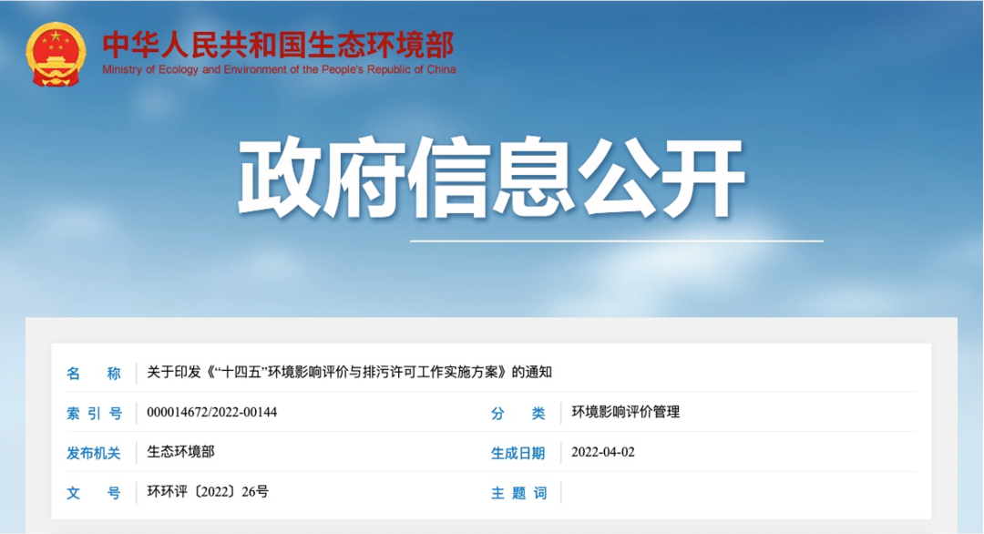 生态环境部 关于印发《“十四五”环境影响评价与排污许可工作实施方案》的通知