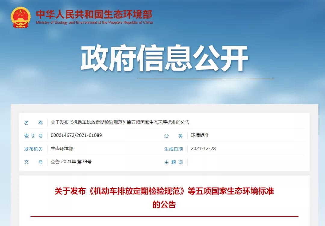 生态环境部发布《机动车排放定期检验规范》等五项国家生态环境标准