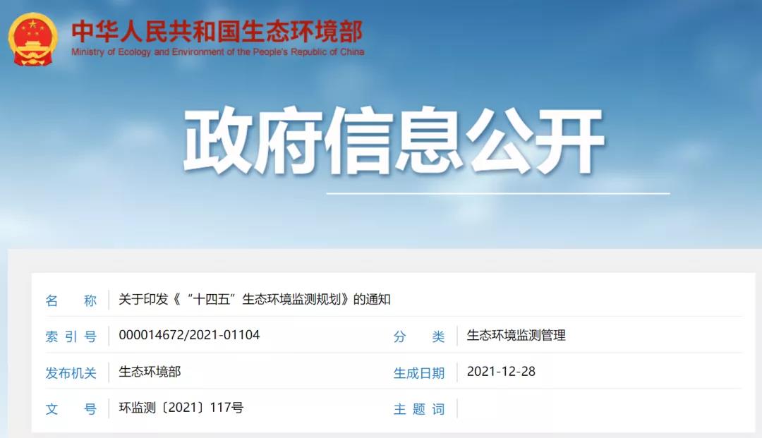 生态环境部印发《“十四五”生态环境监测规划》