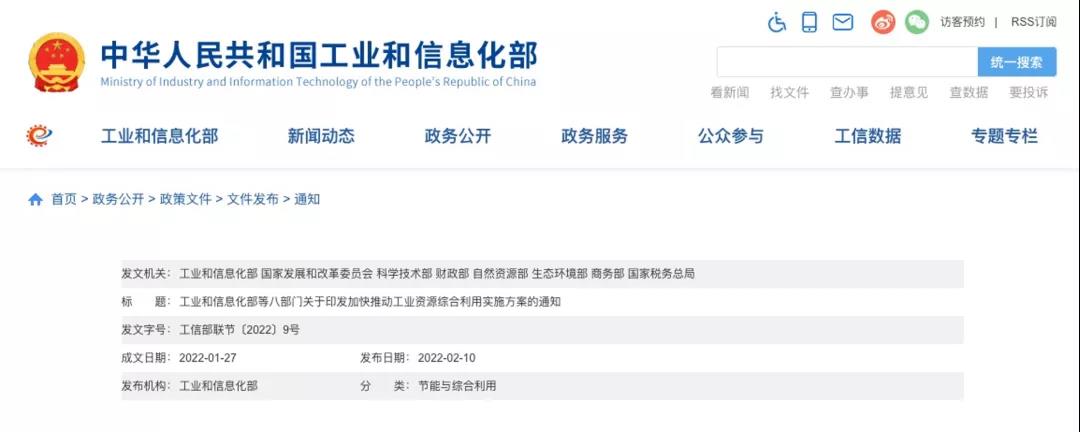 八部门关于印发加快推动工业资源综合利用实施方案的通知
