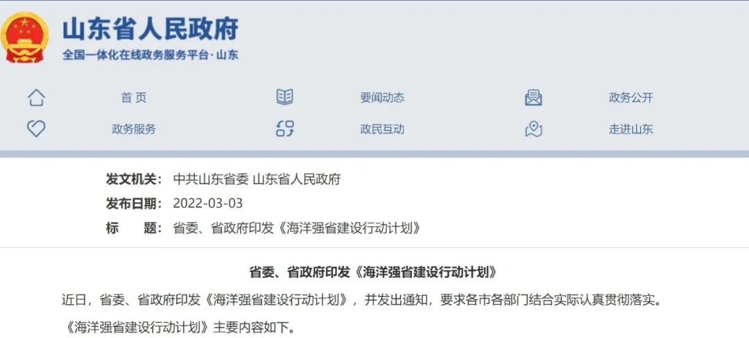 山东省委、省政府印发《海洋强省建设行动计划》