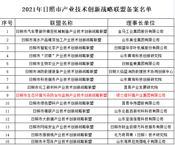 日照市生态环境污染防治与监测产业技术创新战略联盟 通过日照市科技局备案