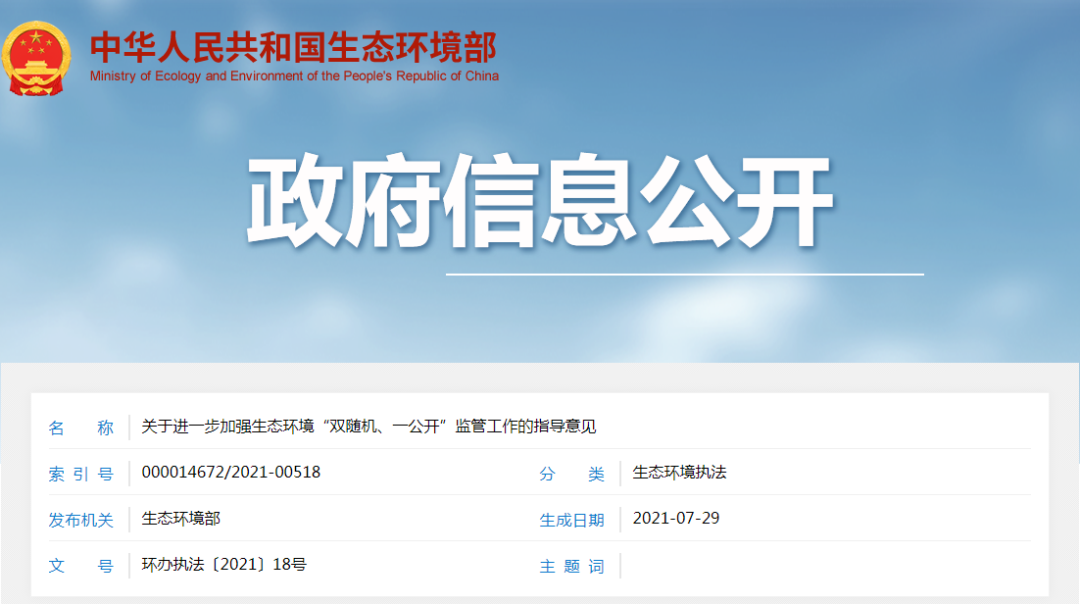 《关于进一步加强生态环境“双随机、一公开”监管工作的指导意见》