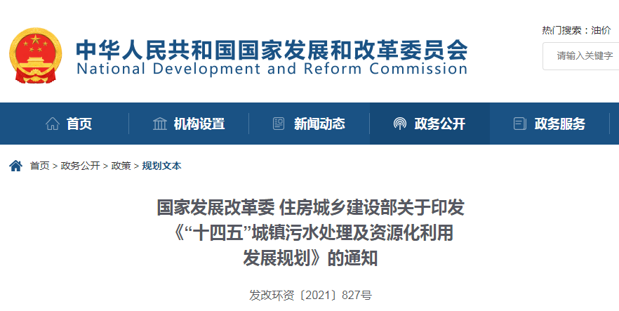 《“十四五”城镇污水处理及资源化利用发展规划》发布