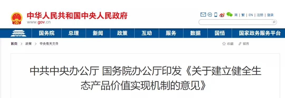 两办印发《关于建立健全生态产品价值实现机制的意见》
