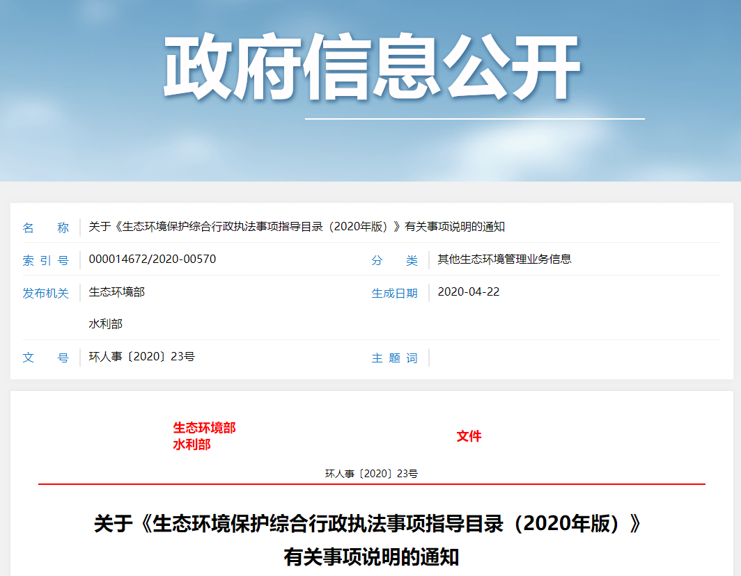 环境部水利部联合发文,明确环保综合执法职责边界
