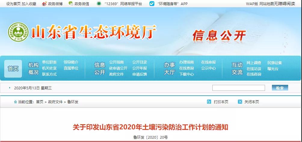 山东省2020年土壤污染防治工作计划(全文发布)