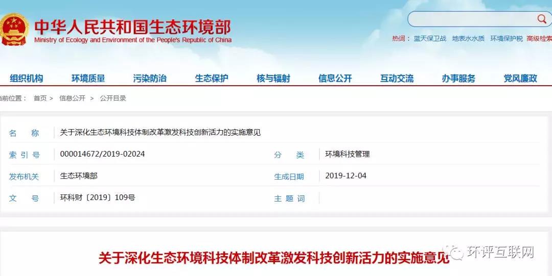 环境部 | 关于深化生态环境科技体制改革激发科技创新活力的实施意见