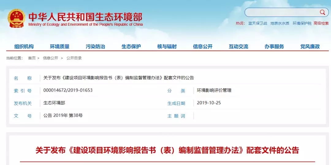 重磅:《建设项目环境影响报告书(表)编制监督管理办法》配套文件发布