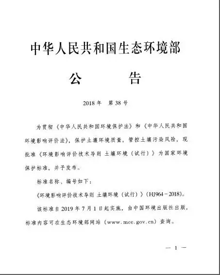 《环境影响评价技术导则 土壤环境(试行)》(HJ964-2018)发布