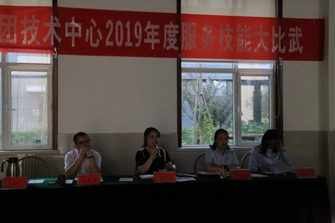 此次比武内容丰富多样,包括知识问答、流程演练、情景模拟、客诉应对等方面,全面考察参赛人员的各项服务技能。技术中心参赛人员共分为八组团队,通过现场抽签的形式,确定各组出场顺序及所答考题,评委根据各组的表现评分并排名。各队答题你来我往,比赛气氛紧张激烈。集团董事长陈总、集团技术中心总监牟总、集团营销中心总监唐总担任比赛评委,陈总对比武做出了专业细致的点评,并提出了建设性意见。