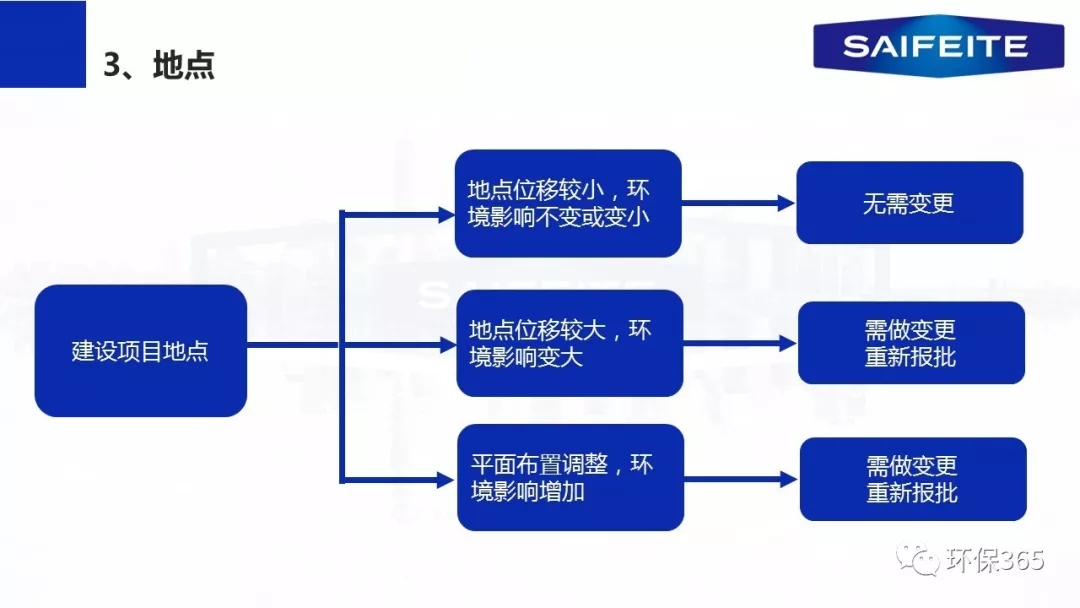 《关于印发环评管理中部分行业建设项目重大变动清单的通知》(环办〔2015〕52号):“根据《环境影响评价法》和《建设项目环境保护管理条例》有关规定,建设项目的性质、规模、地点、生产工艺和环境保护措施五个因素中的一项或一项以上发生重大变动,且可能导致环境影响显著变化(特别是不利环境影响加重)的,界定为重大变动。”