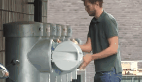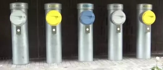 这些看似邮桶的装置,便是垃圾的入口。居民刷卡支付后,便能打开箱门,将垃圾放入其中。桶内设有自动感应装置。一旦装满,阀门自动开启,垃圾们应声而下,在强劲风力的推动下,顺着管道,以每小时70公里的速度,奔向中央收集站的大箱子里。