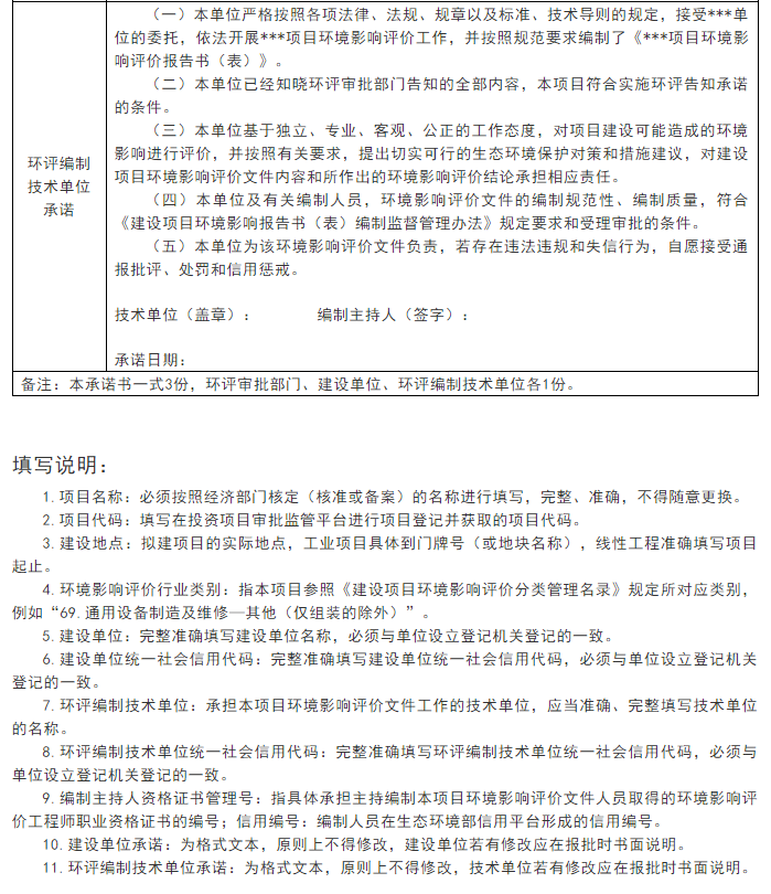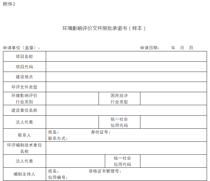 2.环境影响评价文件报批承诺书(样本)