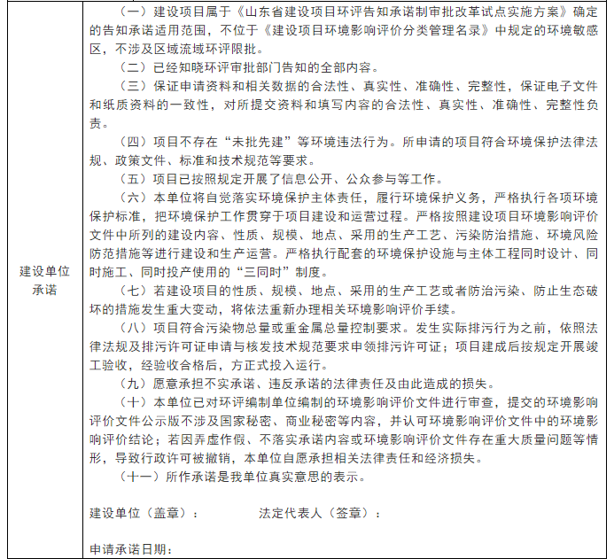 山东省建设项目环评告知承诺制