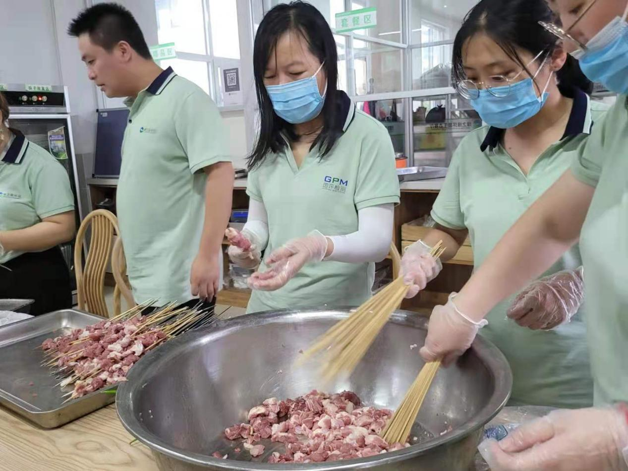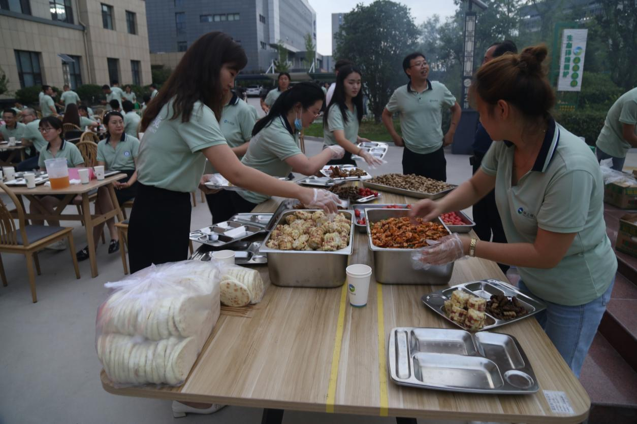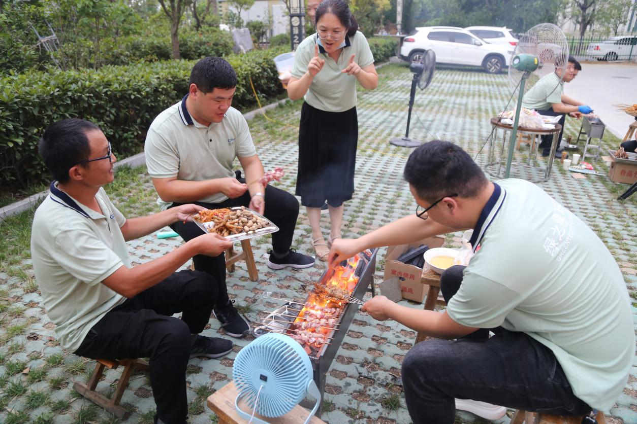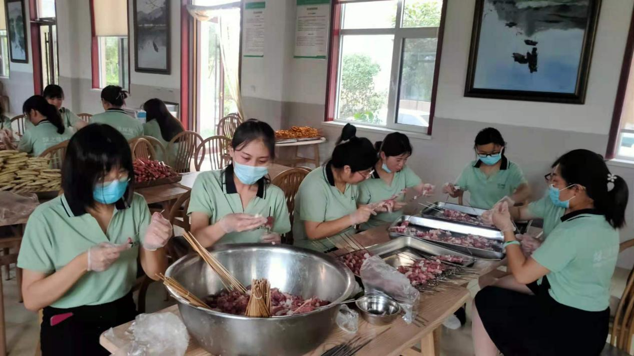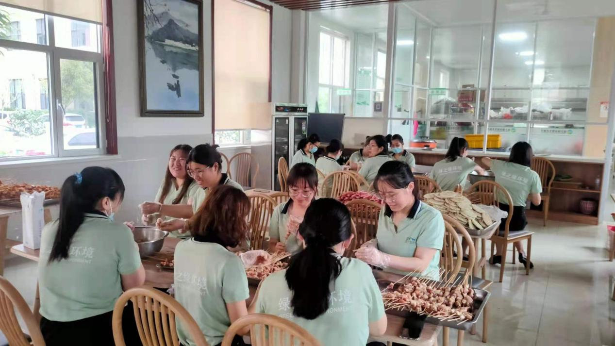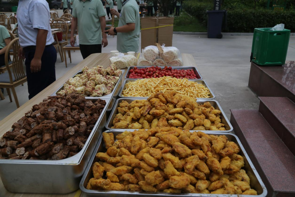 全体干部职工齐心协力准备烤串等美食