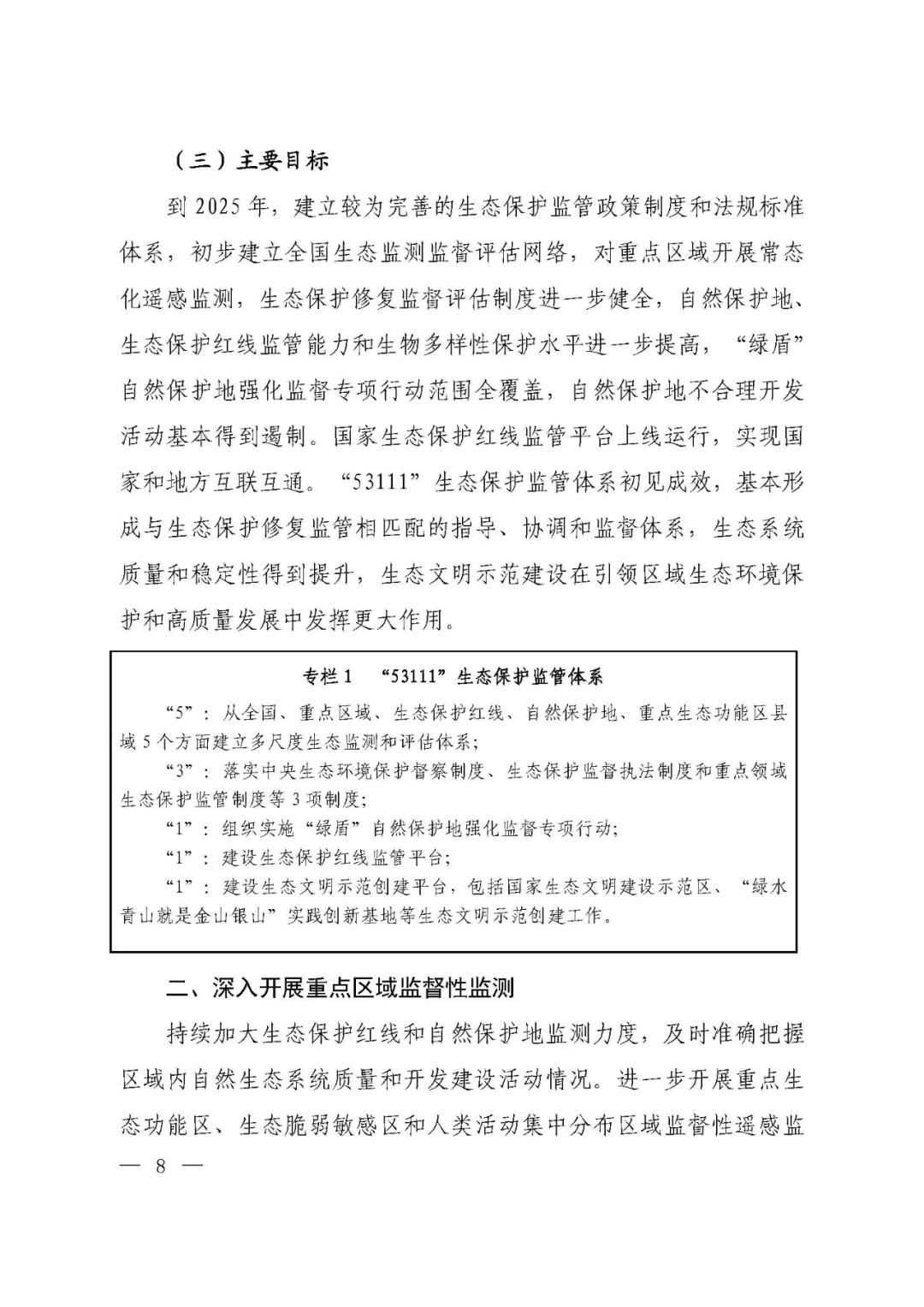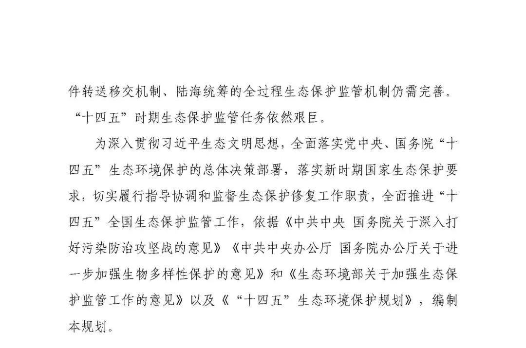 为深入贯彻习近平生态文明思想,全面落实党中央、国务院“十四五”生态环境保护总体决策部署,深入推进“十四五”全国生态保护监管工作,我部编制了《“十四五”生态保护监管规划》。现印发给你们,请结合实际认真贯彻执行。